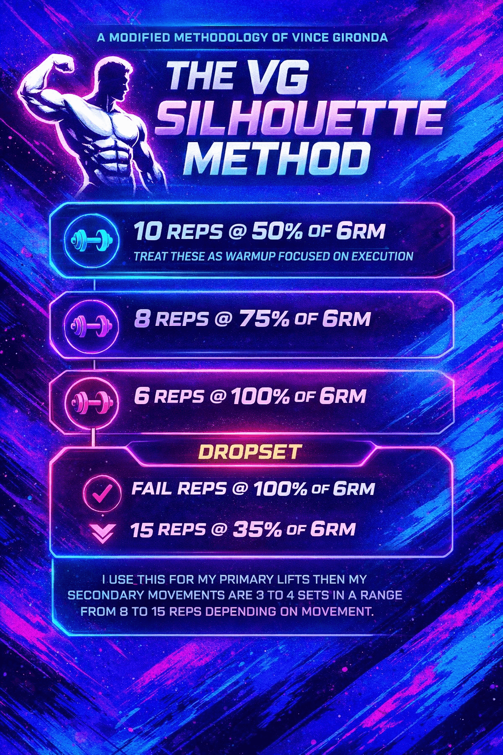 Gentlemen, the Silhouette Method is my 2026 adaptation, a modified 10-8-6 dropset-15 that prioritizes safety, execution, and progressive overload for men over 40. Based on the image, here is the breakdown: